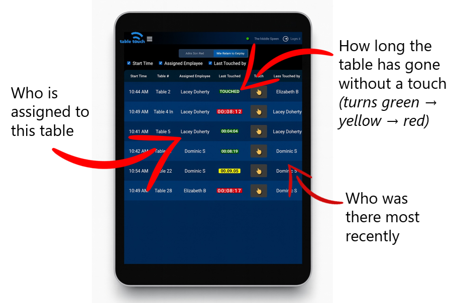 Table Touch automatically tracks when staff visit tables and shows that timing in real time.